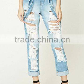 Stylish Women's Sex Distressed Suspender Jeans / New Style Fashion Women Jeans T1703032