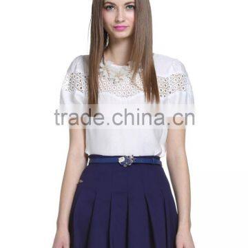 Product name | Girls Hollow out elegant elastic hem jacquard short sleeve hot shirt/blouse |