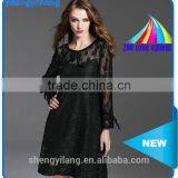 Customize Fashion Black Lace Hollowed-out Two-piece Middle Long Dress