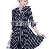 European Style Ladies Spring v Neck Half Sleeve Strip Dress