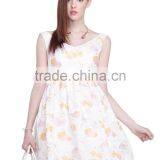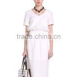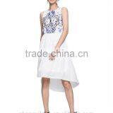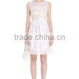 Ladies OEM Service Elegant White Chiffon Embroidery Combined Middle Dress