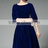 Ladies Royal-blue/red Bouffant Pleuche Dress With Zipper Back