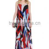 2016 Hot Sale Special Design Sleeveless Contrast Color Wide A-line Middle and Long Dress