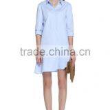 Womens 100% Cotton Long Sleeve Half Placket Falbala Casual Dress