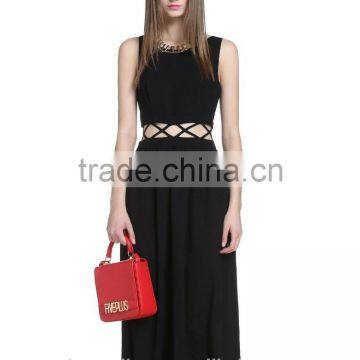 Latest Girls round neck black chiffon waist halter long dress |