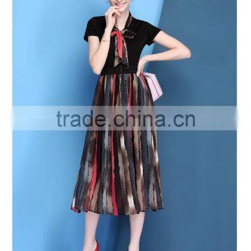 Summer Odile and chiffon combined little V-neck middle/long style dress with waist bow |