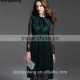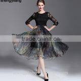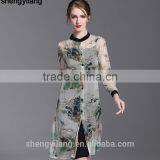 2016 Spring Summer Retro Lace Silk Slim A-line Luxury Guanzghou Dress