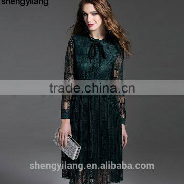 Ladies maroon dark green hollowed lace 100% polyester dress |