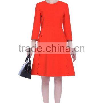 Ladies wavy side 3/4 sleeve high waist red umbrella cotton ol dress |