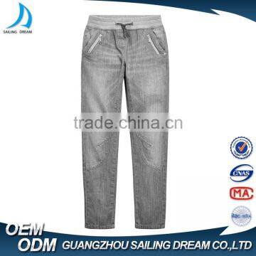 Wholesale cotton light gery zipper decoration jeans trousers for children
