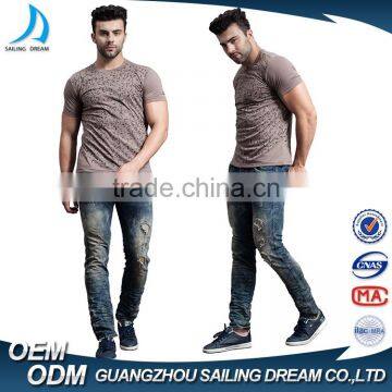 Top Sale New Design Autumn Customized Blue Hole Design Denim Ripped Jeans Men 2017 Denim