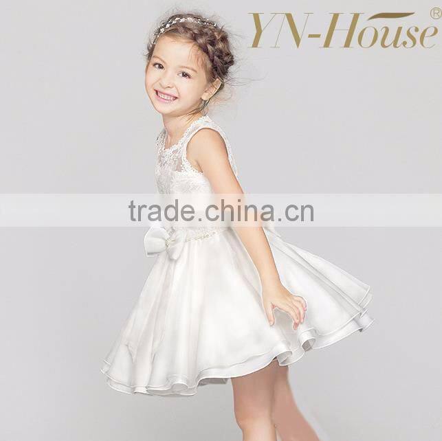 YNF030 New Arrived Latest Designs White Girls Party Dresses With Big Bowknot