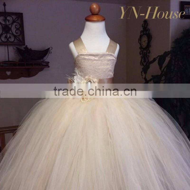 YNF0126 New High Quality Elegant Knee-length Net Flower Girl Dresses For 4 - 14 Years Old