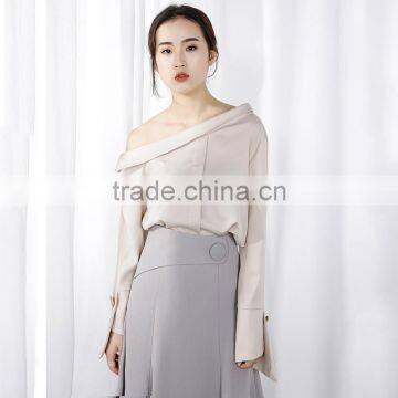 2017 autumn new style chiffon sexy collar diagonal shoulder long sleeve fashion blouse chiffon shirt