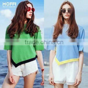 Summer new fashion irregular design short sleeve slim T-shirt in women's uique knitted top