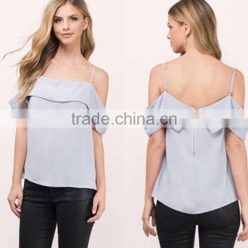 2017 Fashion lady clothing Lastest summer grey cold shoulder blouse