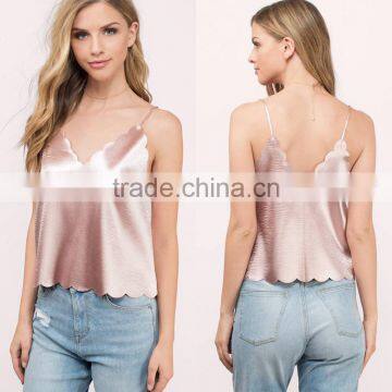2017 latest fashion design sexy ladies 2017 Fashion lady clothing Lastest summer pink blouse satin tank top