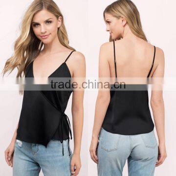 2017 latest fashion design wholesale black sexy tank top satin blouse