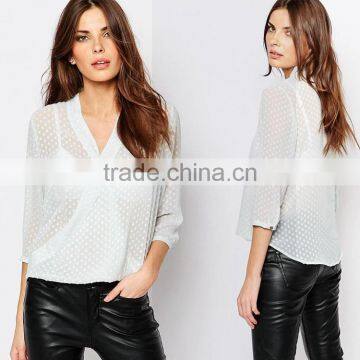 Latest V neck 2016 ladies chiffon women tops casual for wholesale