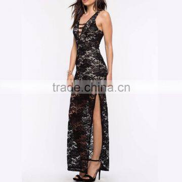 New Arrival Deep V Neck Maxi Long Dress Split Lace Sexy Dresses Women's Evening Dress for OEM 2016