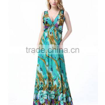 Plus Size Ladies Long Beach Dress Newest Fashion Sleeveless Flowery Jumpsuit Dress for Wholesale