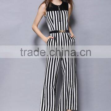 2017 Guangzhou Wholesale Stripe Casual Comfort Unique Mature Elegant Summer Sleeveless Jumpsuit With Belt for Ladies