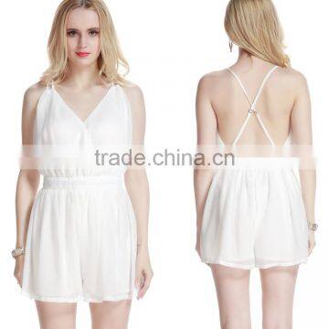 2016 Fashion lady dresses v neck summer beach casual backless jumpsuit women dresses elegant