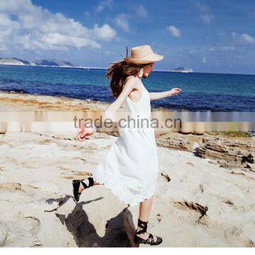 2017 new design high grade white lace stitching beach dress low-neck loose and comfortable sling elegant summer dress for women