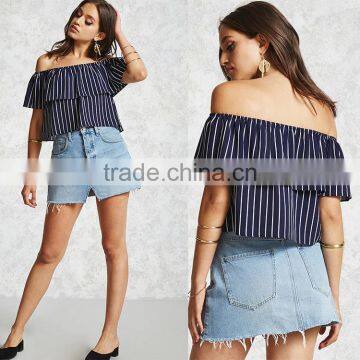 Hot sale fashion short sleeve summer casual off shoulder striped sexy women blouse