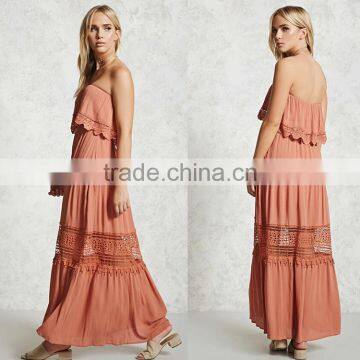 New Style Custom Hollow Summer Lace Tube Casual Sexy One Shoulder Long Women Clothing Dress