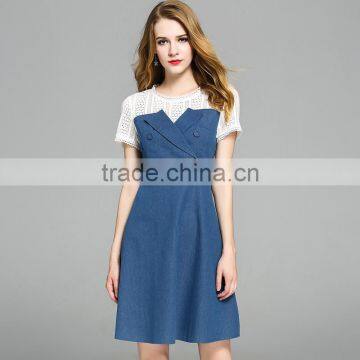 Top quality summer dress for women new design spliced cowboy demim dress elegant daily A shape dress