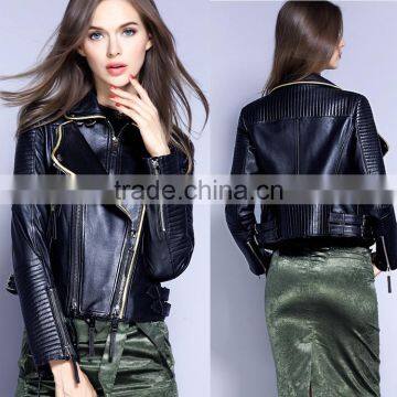 2017 latest designs lady casual fashion women leather motorcycle jacket for wholesale
