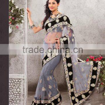 Home > Apparel & Accessories > Ethnic & Folk Apparel > Terrific Black & Ash Color Combination Blooming Bliss Designer Sarees Collections