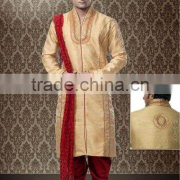 Mens sherwani designed with Sequins, Beads, Stone, Cutdana & Zardosiwork. Embroidery will be on front Border, Collar, Shoulder and Cuffs gives a Charming effect.