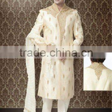 Mens sherwani designed with Sequins, Beads, Stone, Cutdana & Zardosiwork. Embroidery will be on front Border, Collar, Shoulder and Cuffs gives a Charming effect.