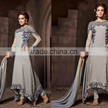 Ash Color Zari Design Beauty Charm Designer Semi Stitch Salwar Kameez