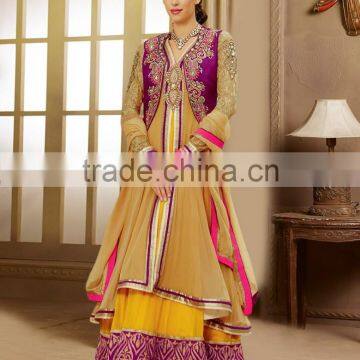 Yellow Color on Brown With Purple Color on Embroidery Heavy Design Jacket Long Anarkali Designer Semi Stitch Salwar Kameez