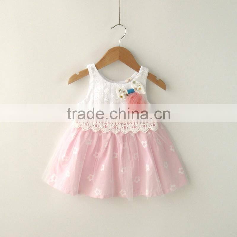 100% cotton short sleeve summer lace flower baby dress