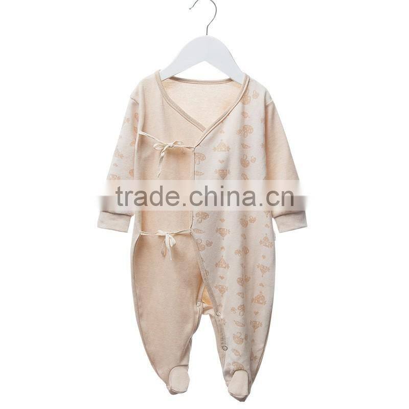 100% Cotton Pure Color Cute Printing Wholesale Baby Autumn Playsuit