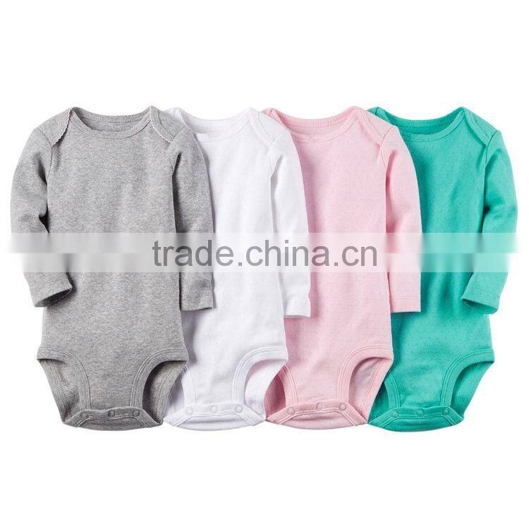 Wholesale 100% Organic Cotton Baby Clothes Newborn Romper Long Sleeves Plain Blank Baby Bodysuit