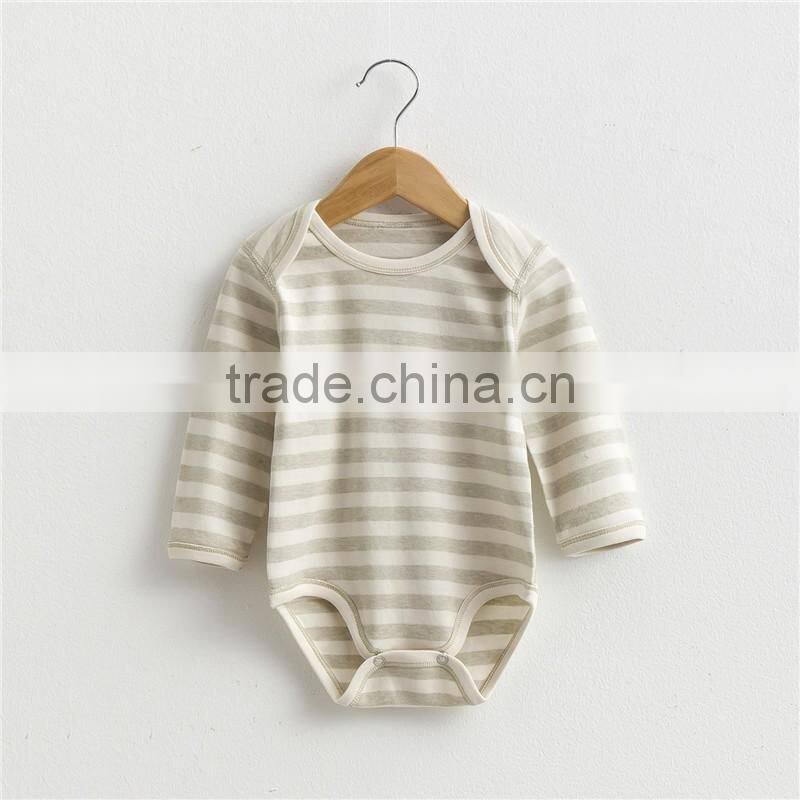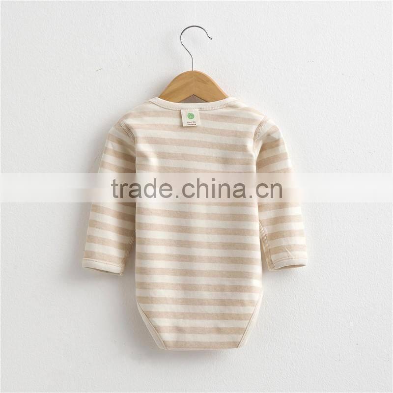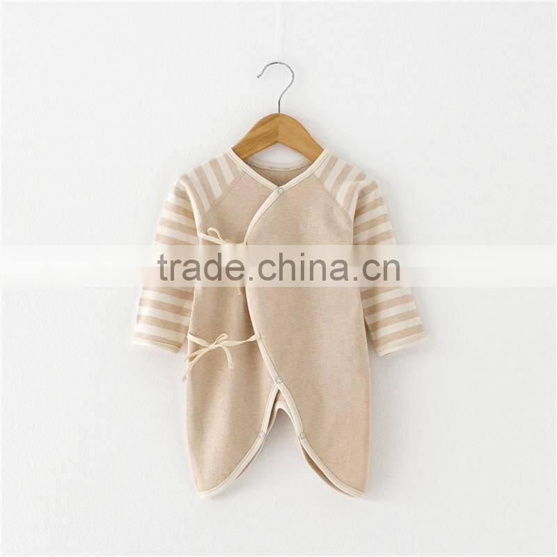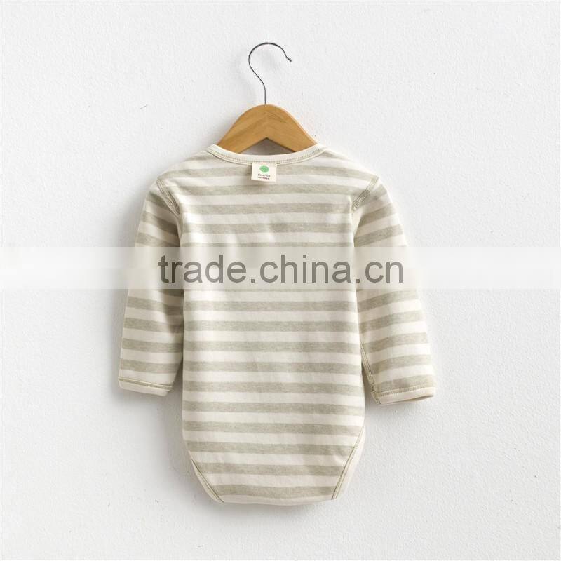 Wholesale 100% Organic Cotton Baby Romper Solid Strip Pattern Baby Newborn Bodysuit