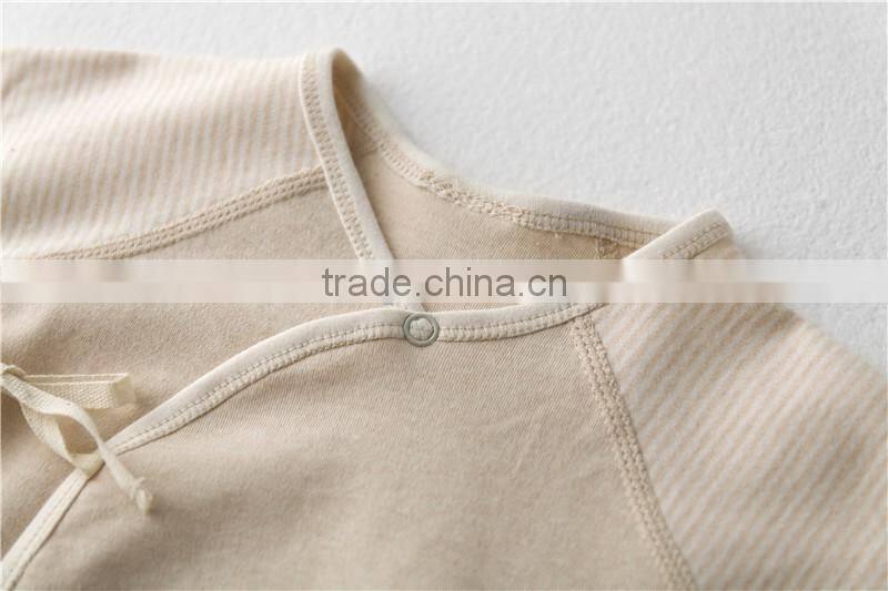 Wholesale 100% Organic Cotton Baby Romper Solid Strip Pattern Baby Newborn Bodysuit