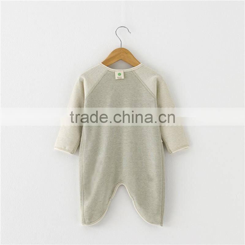 2017 Hot Selling Organic Cotton Plain Baby Boys Girls Romper Long Sleeves Set OEM Service