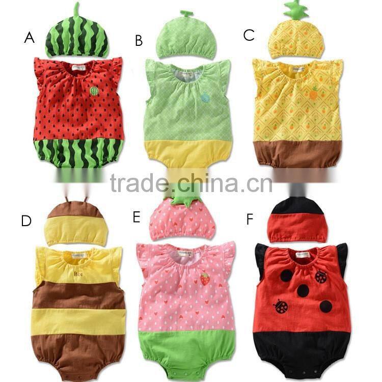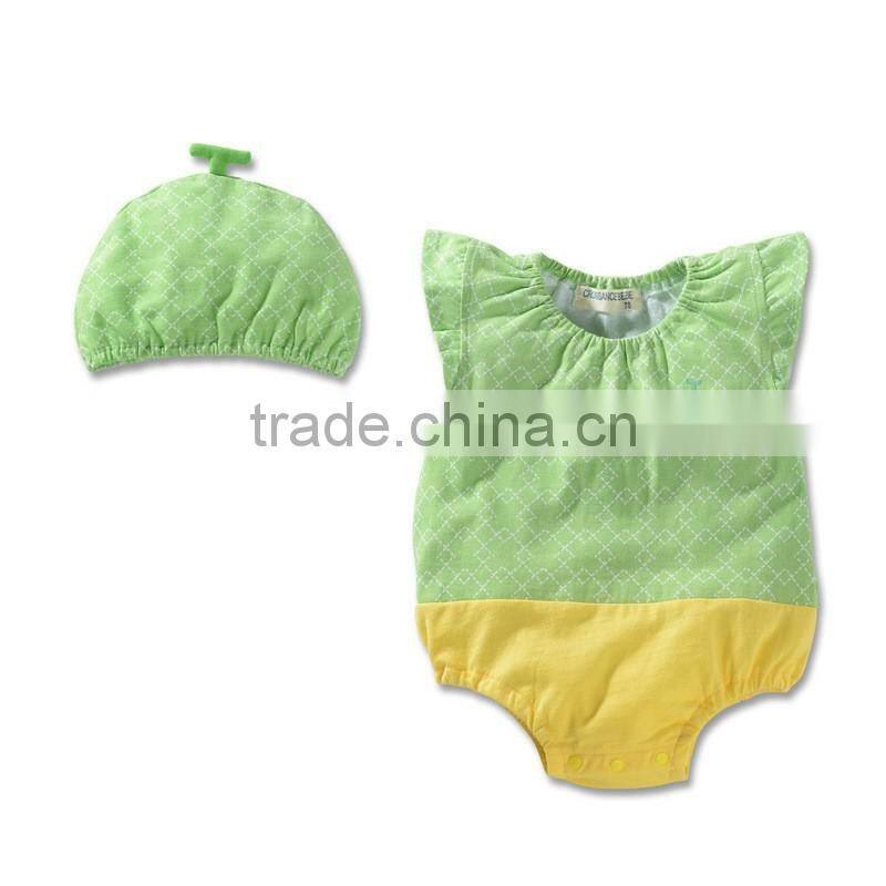 Factory supply new fashion funny baby girl boy rompers w/ hat newborn clothing set