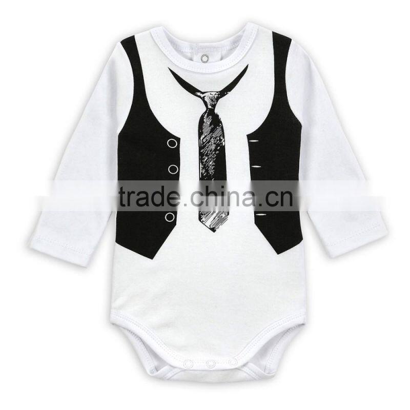 Wholesale 100% Cotton Baby Boy Romper White Baby Bodysuit Fake 2 Pieces Winter Long Sleeve Jumpsuit