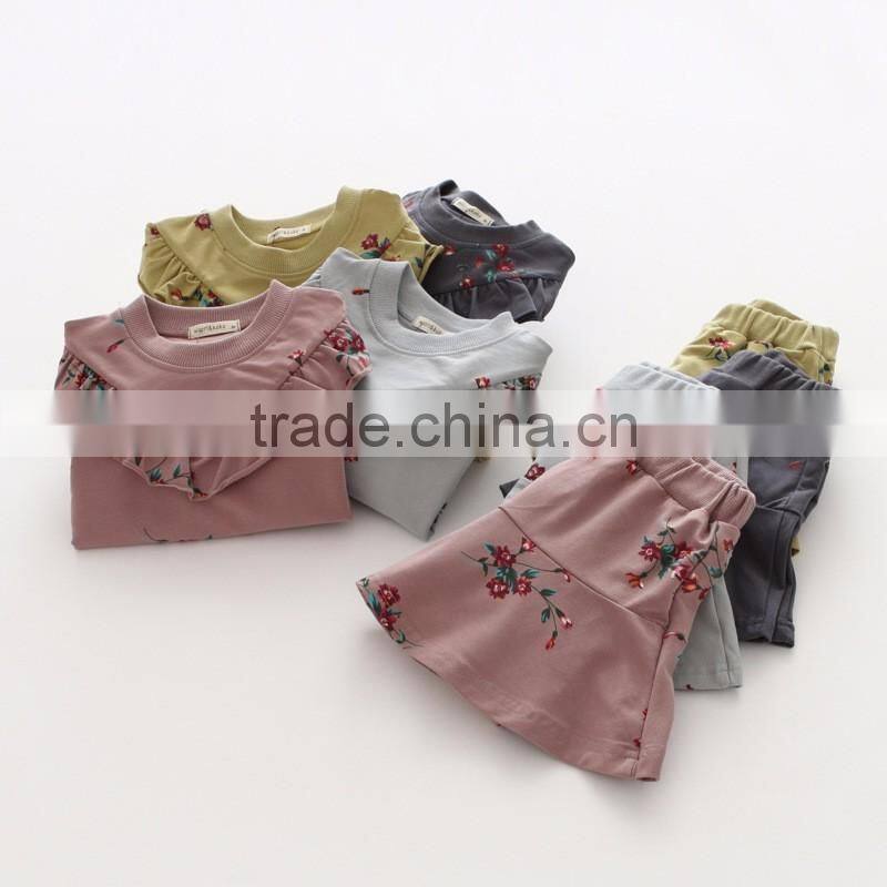New Style Flower Printing Casual Cotton Wholesale Girls Clothing Sets