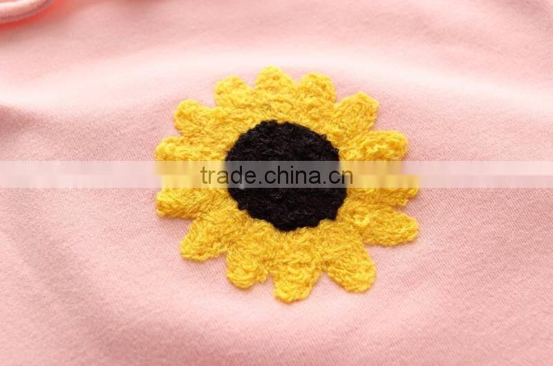 100% Cotton High Quality Solid Color Autumn Embroidery Girls Clothing Sets