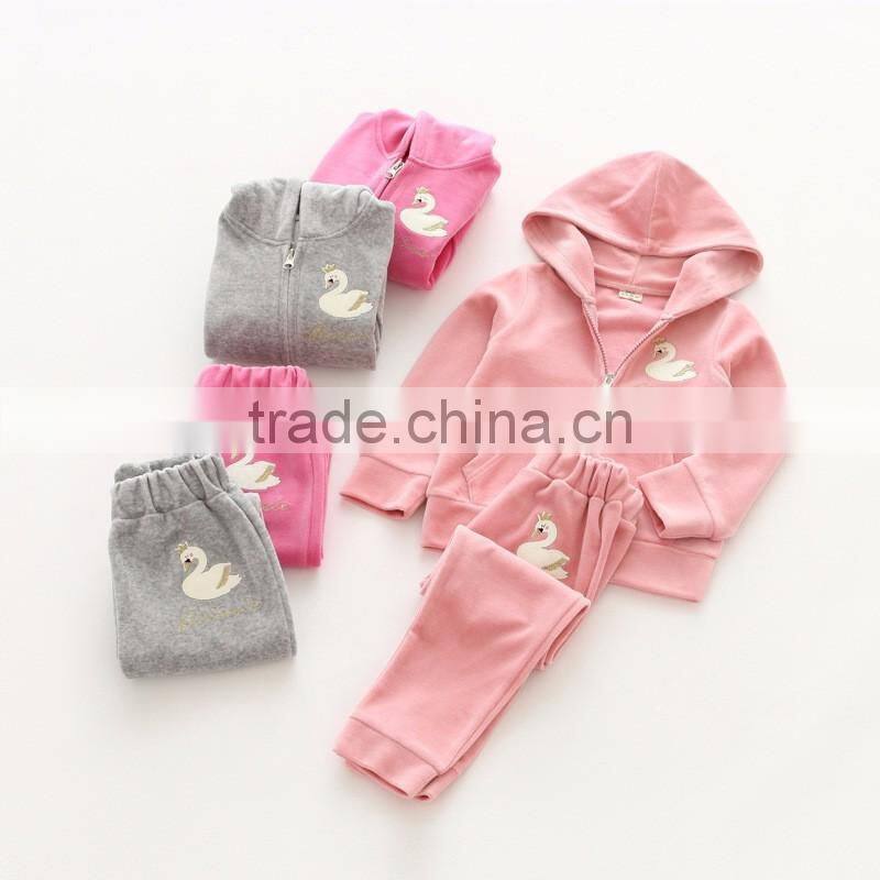 Wholesale new style velvet girls casual kids clothing set