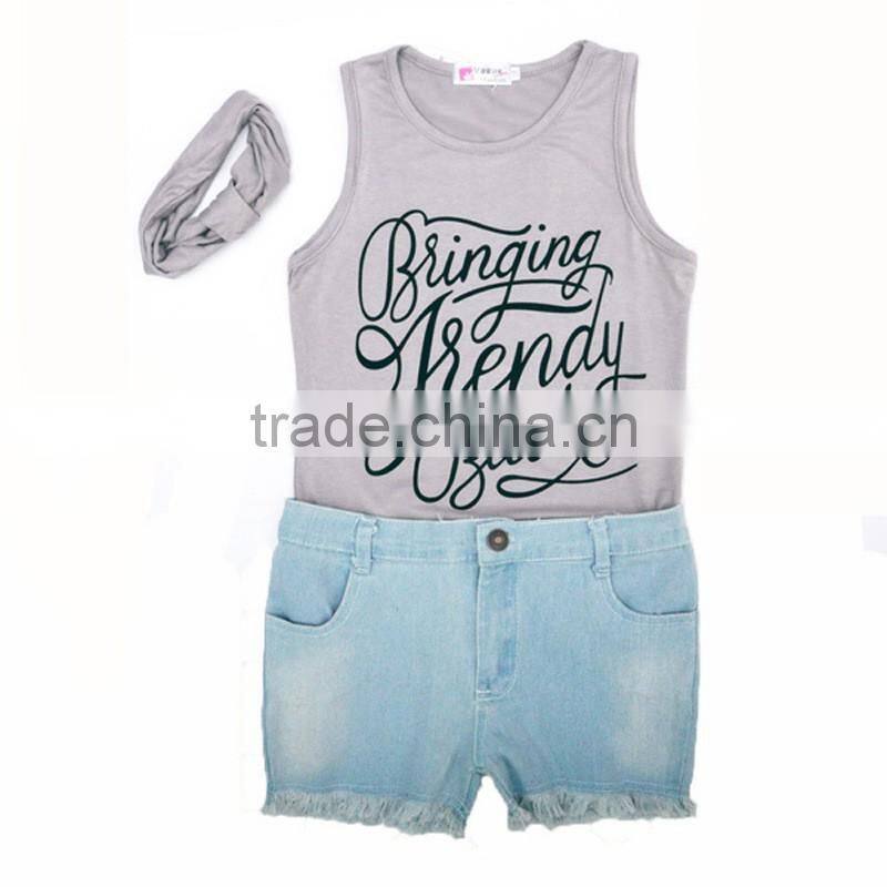 Wholesale 3 pieces kids t shirt casual beach wear set w/ headband