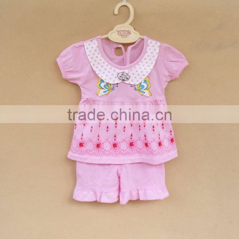 Wholesale summer cotton printing girls kids t shirt with pants set